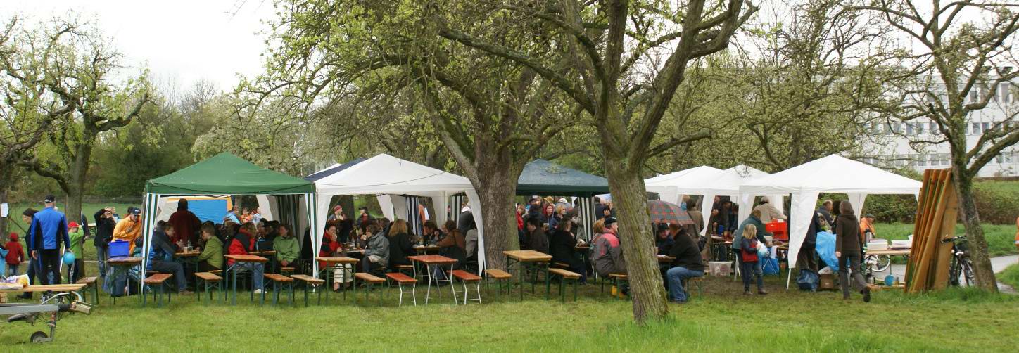 An einem wunderschönen Samstagmittag..... nein, es war verregnet. Als wir morgens mit dem Aufbauen angefangen hatten, waren wir alle enttäuscht. So ein Wetter haben wir wirklich nicht verdient. So viel wochenlange Vorbereitungen.... Aber siehe da, es kamen viele, sehr viele Interessierte!