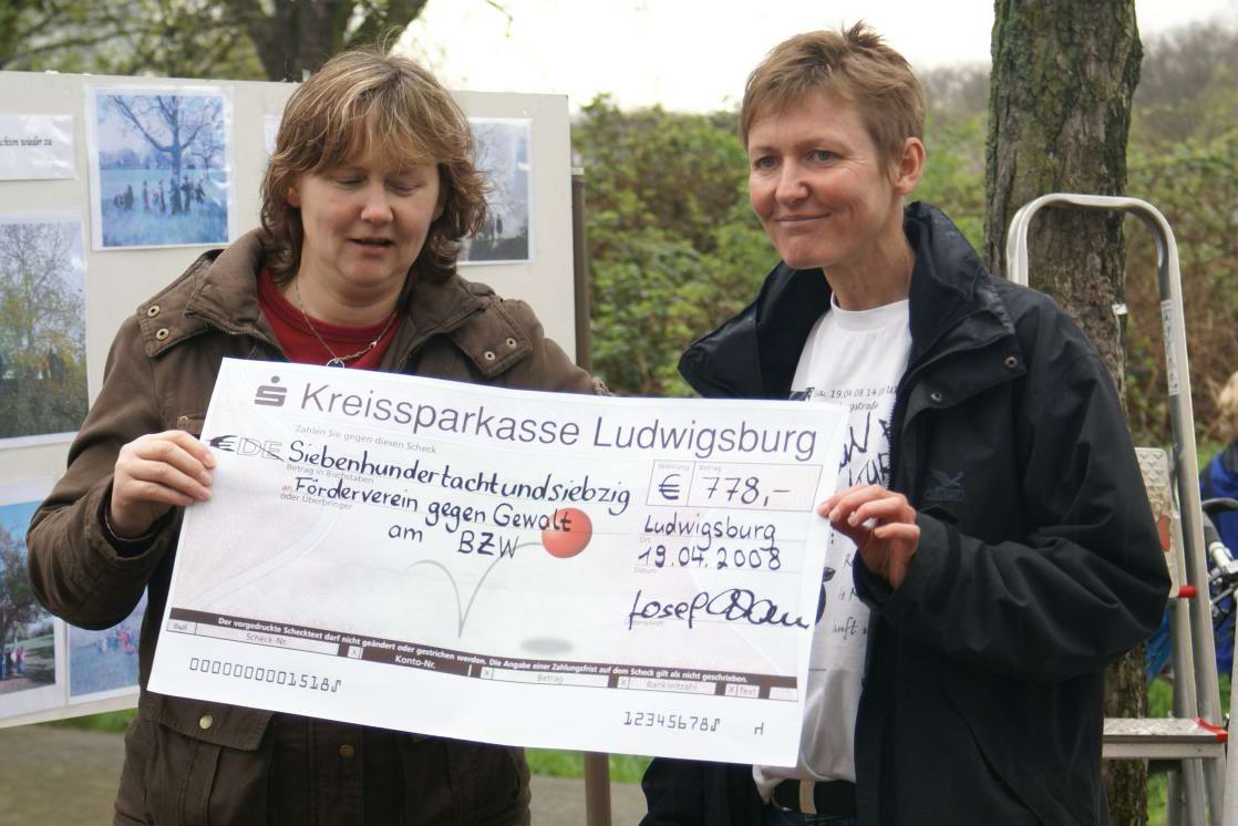 778 Runden wurden erlaufen, dies ergab eine Spende in Höhe von 778 € an den Förderverein gegen Gewalt am Bildungszentrum West |